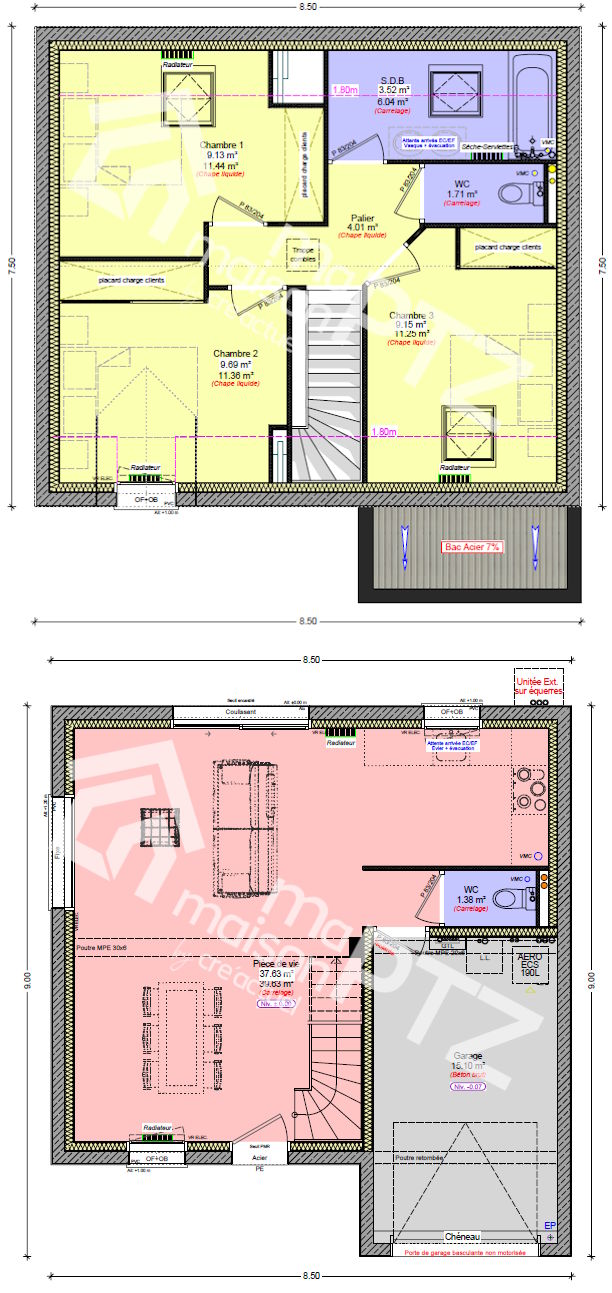 Le modèle Riva + est une maison à étage de 76 m², conçue pour allier accessibilité, fonctionnalité et confort.