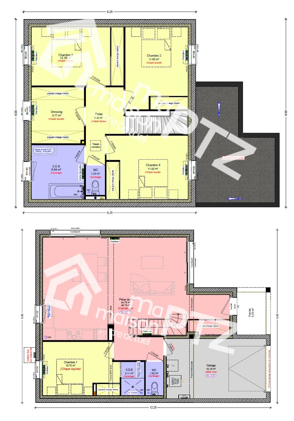 - Nos salles d’eau du RDC sont (pour 95% de nos maisons) équipés de douche à l’italienne et nos SDB sont équipées soit de baignoire soit de receveurs 90/90 ou 90/120.