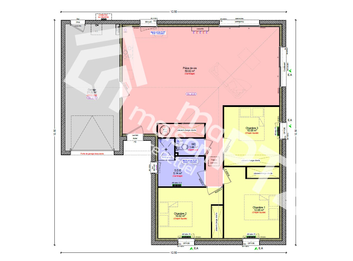 Sur un terrain de 443 m², venez découvrir ce projet de maison plain-pied de 89 m² comprenant :